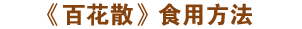 服法:每日四次(包括晚上睡覺(jué)前一次), 每次蜂蜜及《百花散》藥粉各一包調(diào)和,飯前一小時(shí)用適量溫開(kāi)水沖服。
