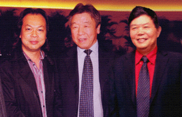 時(shí)任河南省人民政府省長(zhǎng)郭庚茂先生(左)與臺(tái)州商會(huì)支部書(shū)記、《百花散》傳人梅安富先生合影
